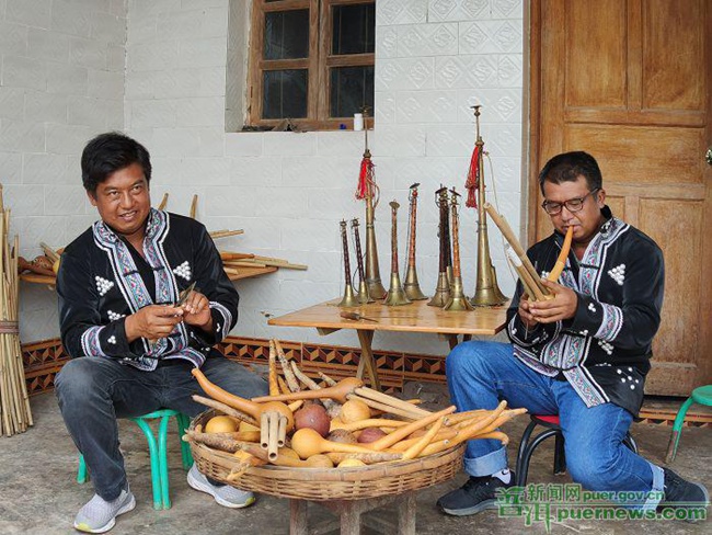 王興友一家三代人都會吹嗩吶,耳濡目染,他也深深喜歡上了這個樂器。此刻的他正坐在新建的住房前,與弟弟王興仁一起學(xué)習(xí)嗩吶調(diào)子,研究做蘆笙。他感慨地說,現(xiàn)在日子好了,終于可以有空閑的時間做自己喜歡的事情了。