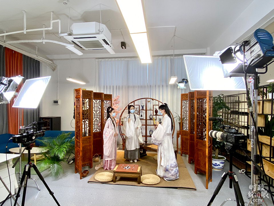 △馬欄山視頻文創(chuàng)園準(zhǔn)備錄制漢服文化節(jié)目。(總臺(tái)央視記者郭曉龍拍攝)