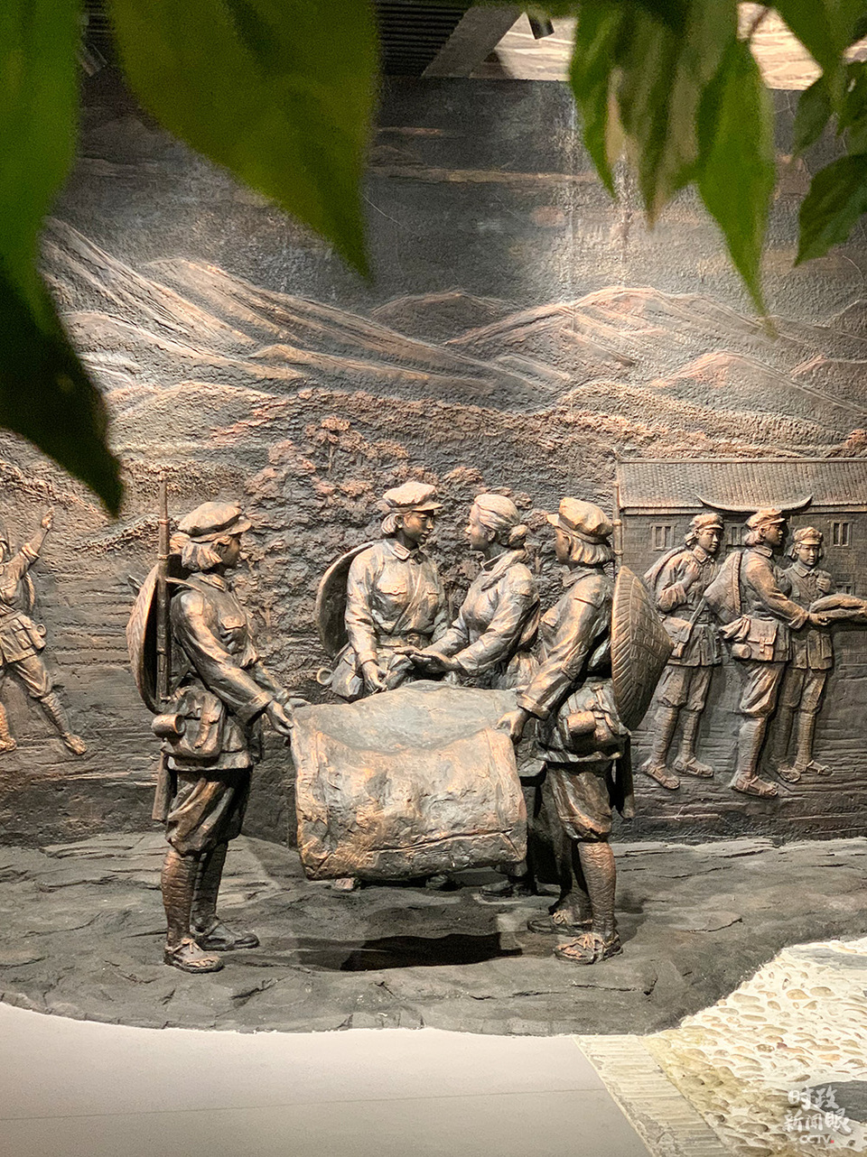 △“半條被子的溫暖”專題陳列館內(nèi)的主題雕塑。(總臺(tái)央視記者邢彬拍攝)