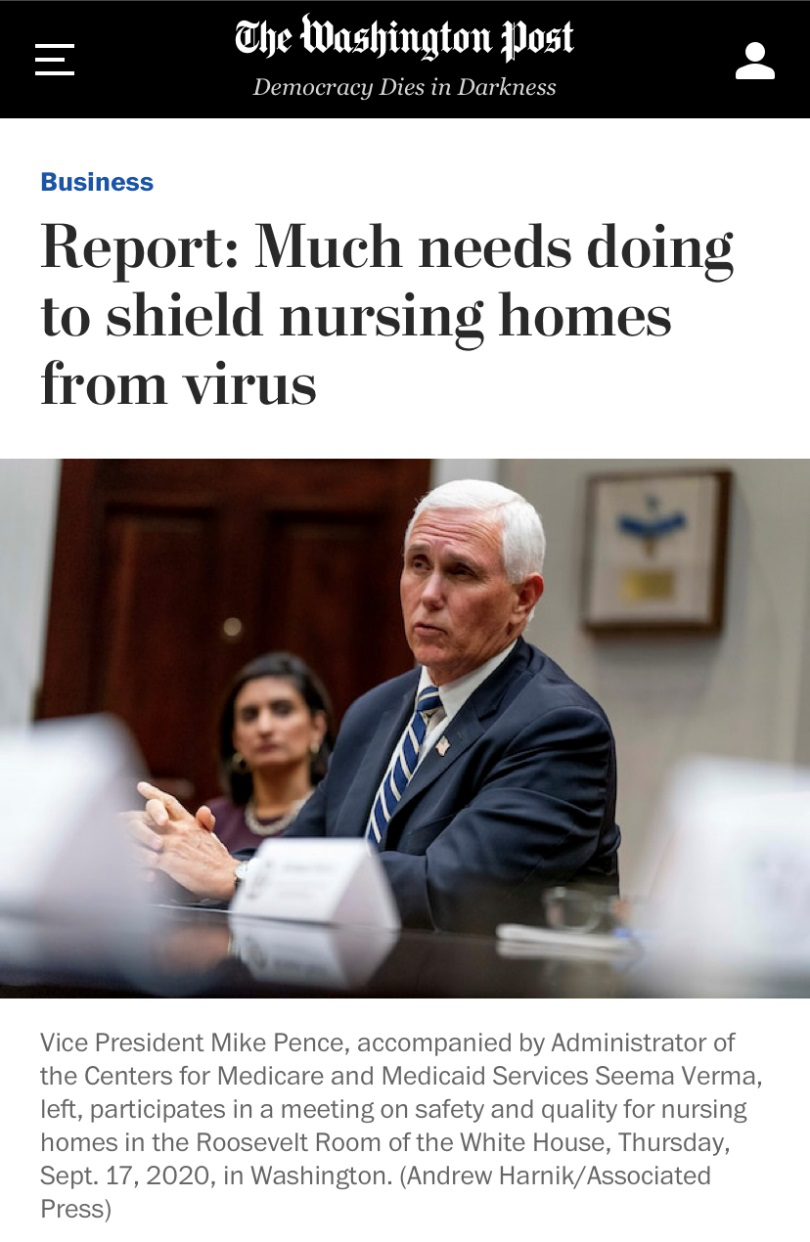 △《華盛頓郵報(bào)》報(bào)道,一份獨(dú)立委員會的報(bào)告稱,需要做很多工作來保護(hù)美國養(yǎng)老院免受疫情侵害。