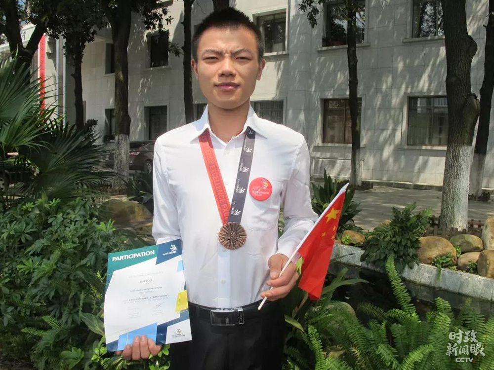 △鄒彬在第43屆世界技能大賽砌筑項目獲得優勝獎。