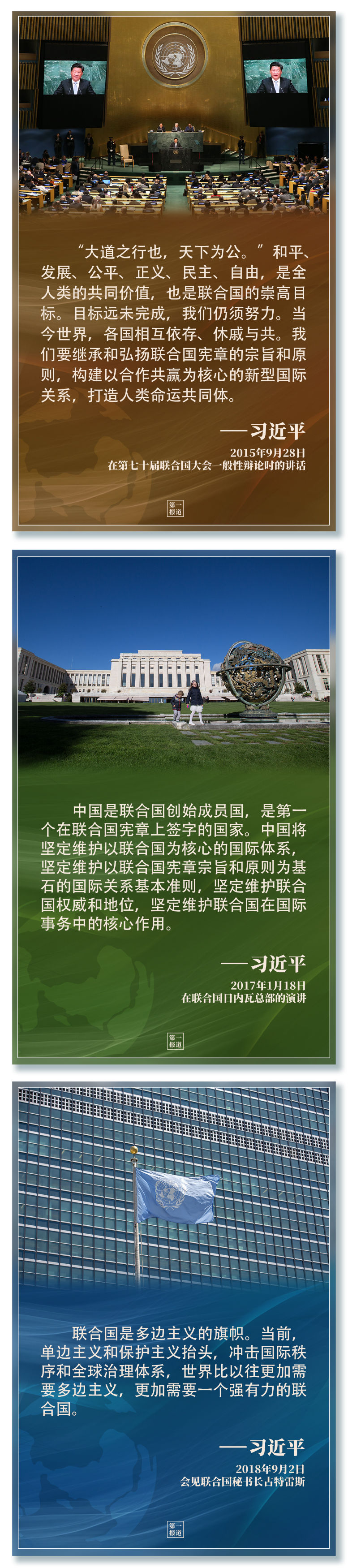 習(xí)主席指出,“支持聯(lián)合國發(fā)揮作用,維護聯(lián)合國權(quán)威和地位,是中國外交一項基本政策。”2013年以來,習(xí)主席多次會見聯(lián)合國主要官員,訪問聯(lián)合國總部及聯(lián)合國專門機構(gòu),出席一系列聯(lián)合國活動……親自推動中國同聯(lián)合國的合作,發(fā)出支持聯(lián)合國事業(yè)、捍衛(wèi)多邊主義的中國強音。