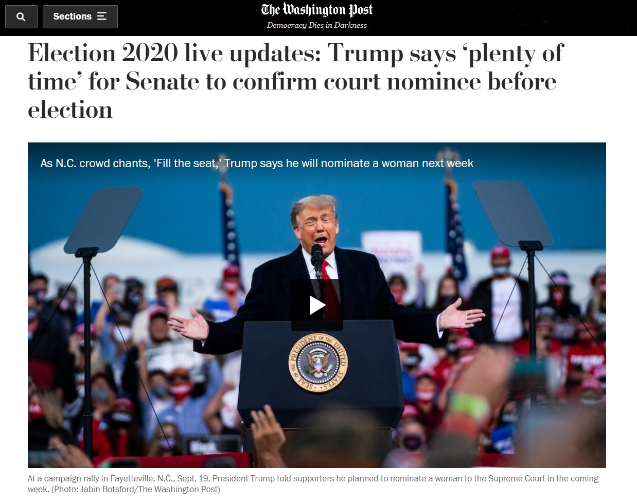 △《華盛頓郵報》稱,特朗普告訴支持者,在總統大選前仍有“大量時間”供參議院確認他提名的最高法院大法官人選