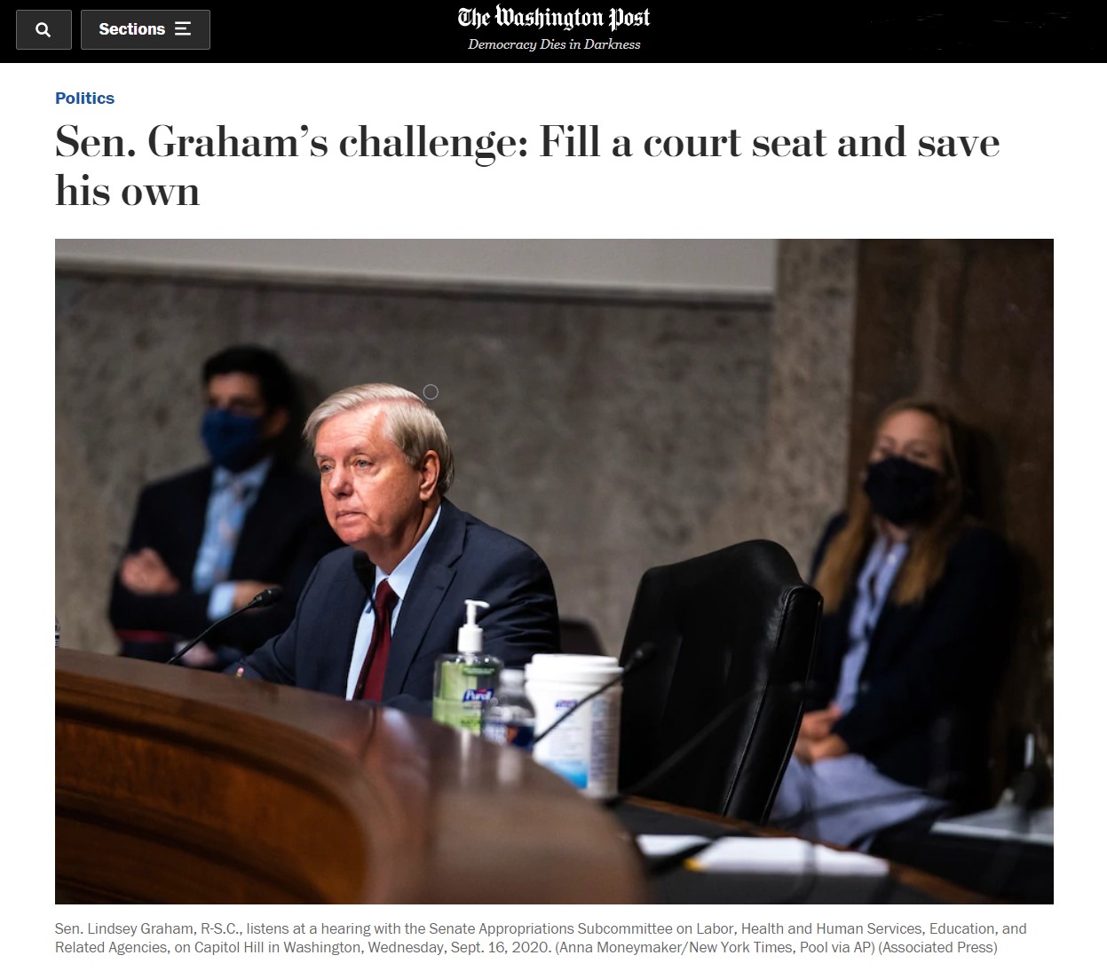 △《華盛頓郵報》稱,格雷厄姆今年11月可能面臨艱難的考驗,因為他正尋求連任,要向選民解釋為何自己改變立場,支持特朗普迅速提名大法官人選