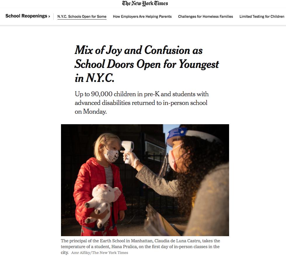 當(dāng)?shù)貢r(shí)間9月21日,據(jù)美國(guó)《紐約時(shí)報(bào)》報(bào)道,超過(guò)9萬(wàn)名紐約市兒童、小學(xué)生當(dāng)天正式返校。紐約市市長(zhǎng)德布拉西奧之所以力排眾議要重開校園,是為了挽回紐約市今年春季對(duì)抗新冠疫情失利的不良形象。紐約市市長(zhǎng)的這一“只顧政績(jī),不顧學(xué)生安危”的舉措,遭到美國(guó)輿論各界的質(zhì)疑和擔(dān)憂。