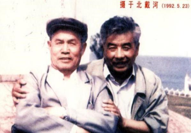 兩個(gè)老戰(zhàn)友:《我是一個(gè)兵》詞曲作者陸原(左)、岳侖1992年在北戴河合影。