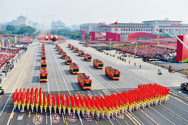 70年來,在中國共產(chǎn)黨堅強(qiáng)領(lǐng)導(dǎo)下,中國人民勇于探索、不斷實踐,成功開辟了中國特色社會主義道路,推動中國特色社會主義進(jìn)入新時代,中國大踏步趕上了時代,中國人民意氣風(fēng)發(fā)走在了時代前列!