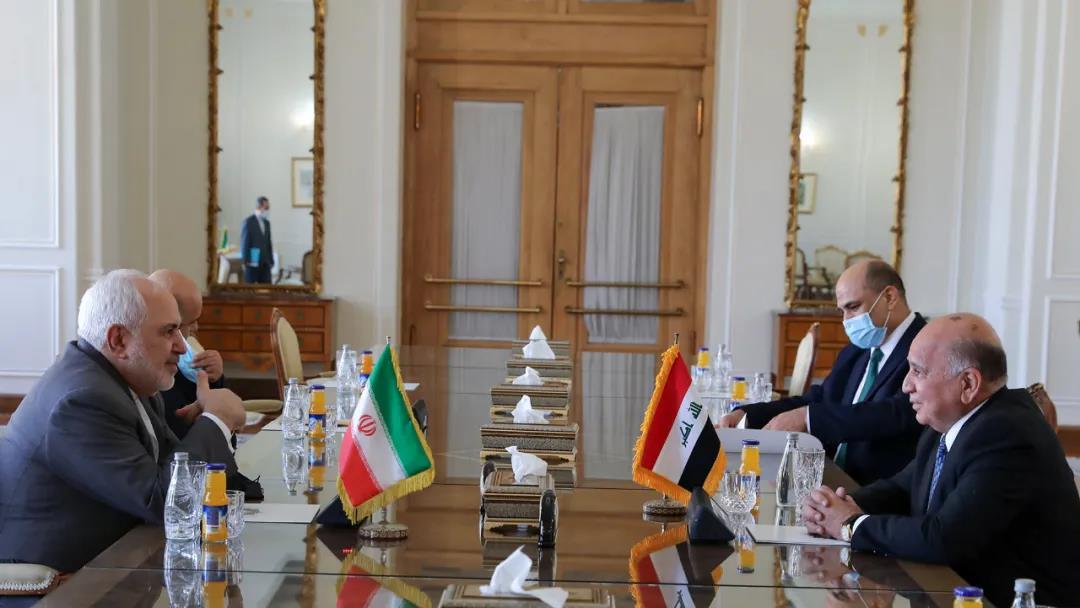 △伊拉克外長福阿德·侯賽因(右)當地時間26日訪問伊朗并同伊朗外長扎里夫舉行會談。