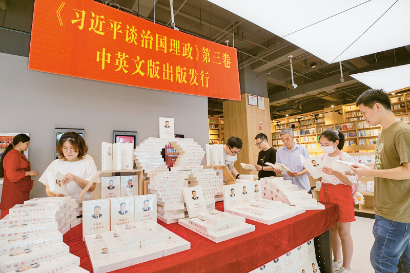 《習(xí)近平談治國理政》第三卷是充分反映黨的十九大以來習(xí)近平總書記領(lǐng)導(dǎo)全黨全國各族人民攻堅克難、砥礪前行偉大實踐的最新教材,是用習(xí)近平新時代中國特色社會主義思想武裝全黨、教育人民、推動工作的最新教材,是我們黨不忘初心、牢記使命、團(tuán)結(jié)帶領(lǐng)人民創(chuàng)造更加幸福美好生活的最新教材,是為世界謀大同、推動構(gòu)建人類命運共同體的最新教材。