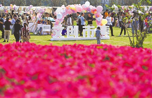 10月1日,安徽首個以青年為主題的田園項目——青年創意田園在合肥東部新中心揭開面紗,這片用都市里的田園升級而來的創意田園項目,設置了文創大賽、潮玩音樂節、先鋒影像展、文創市集、星空露營等五大活動,為市民們帶來豐盛的節日文化大餐。經濟日報-中國經濟網記者 白海星攝