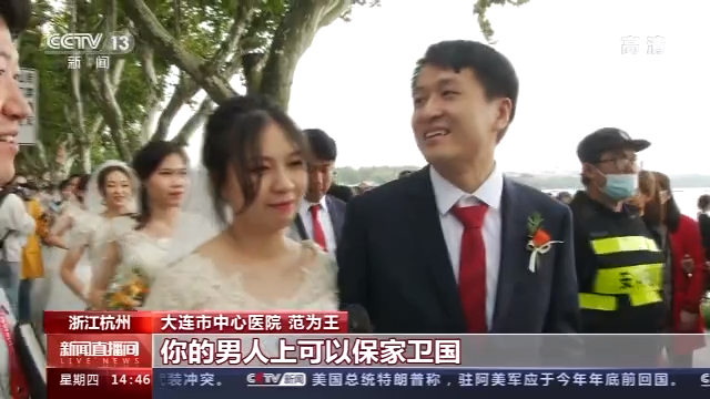 來自遼寧大連的范為王是一名住院醫(yī)師,疫情暴發(fā)時,他第一時間遞交請戰(zhàn)書,參與救治病人。而今天,他又在西湖邊,向妻子許下了愛的諾言。