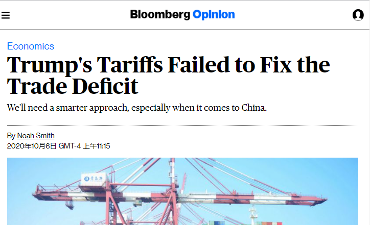 △彭博社稱:特朗普的關(guān)稅未能解決貿(mào)易逆差