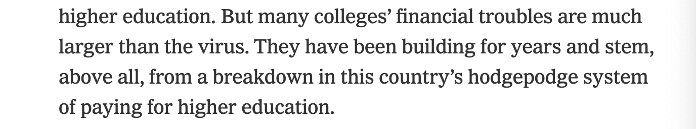 據《紐約時報》報道,美國混亂的高等教育資金體系正在面臨崩潰,疫情加速了這一進程。