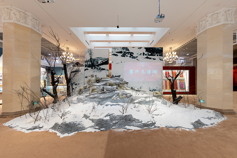 ▲ “銘記偉大勝利 捍衛和平正義——紀念中國人民志愿軍抗美援朝出國作戰70周年主題展覽”中“鏖戰長津湖”場景