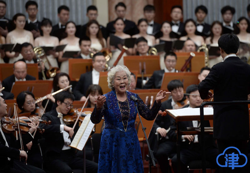音樂會的最后,全體演員再次登臺,與84歲高齡的著名女高音歌唱家于淑珍一同唱響歌曲《我的祖國》。于淑珍寶刀未老,她甜美的歌聲依舊如往昔般驚艷眾人,大家一次次報以熱烈的掌聲。