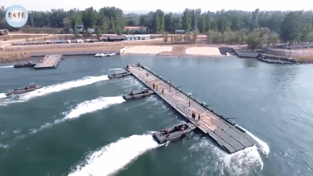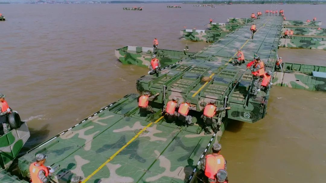 舟橋旅官兵們26分鐘在長江天險架通千米浮橋