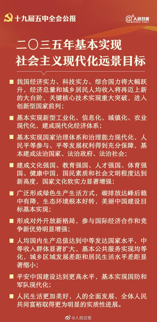 10月29日,中國共產黨第十九屆中央委員會第五次全體會議公報發布。全會高度評價決勝全面建成小康社會取得的決定性成就,提出了到二〇三五年基本實現社會主義現代化遠景目標以及“十四五”時期經濟社會發展主要目標。中國將如何實現這一宏偉藍圖,14個關鍵詞速讀五中全會公報。