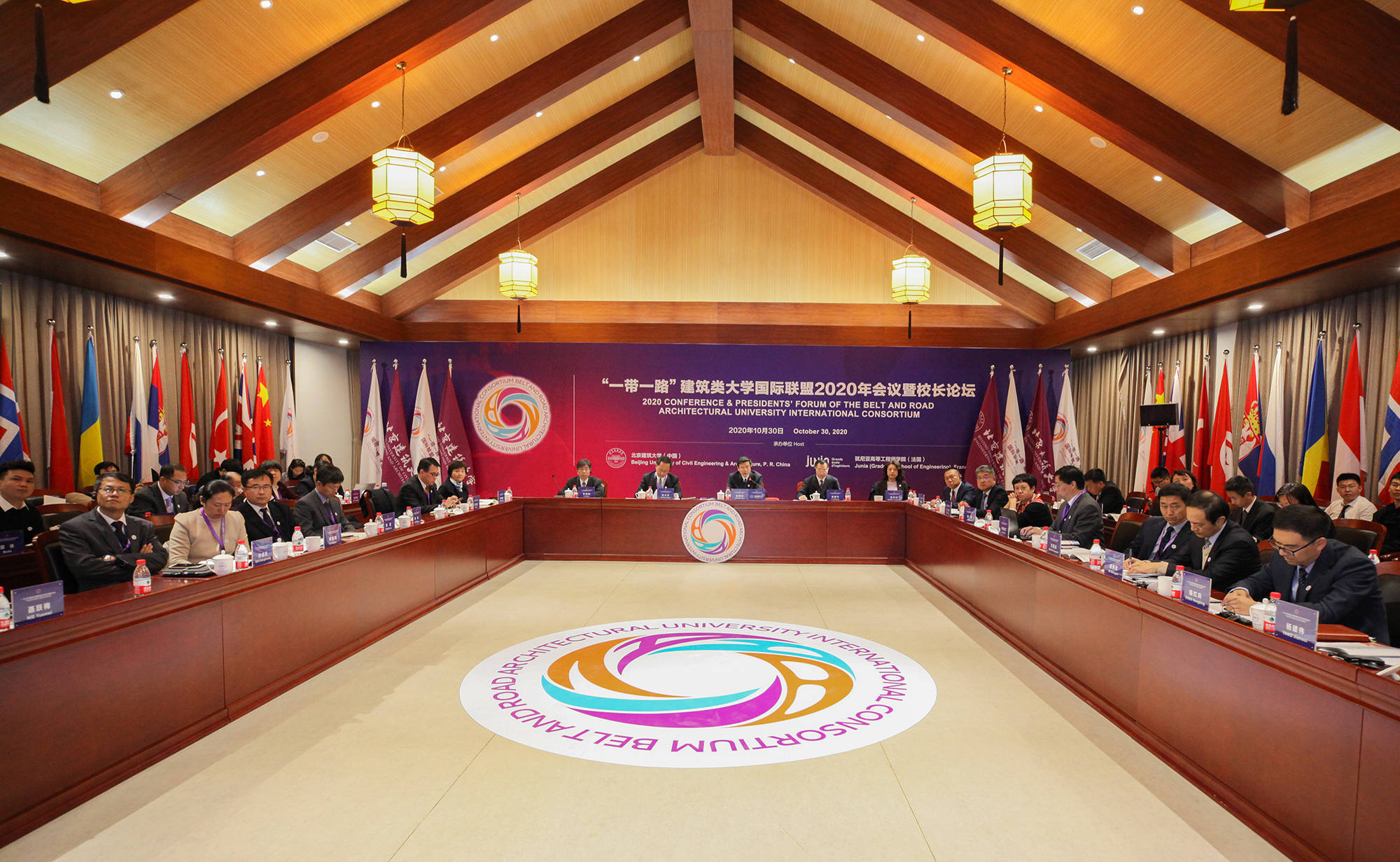 本次論壇由北京建筑大學和法國猶尼亞高等工程師學院聯合舉辦。來自12個國家的26所建筑類大學的代表通過線上、線下結合的方式,共同研討跨文化培養新型人才培養模式,以期推動“一帶一路”沿線國家建筑類大學的交流合作。