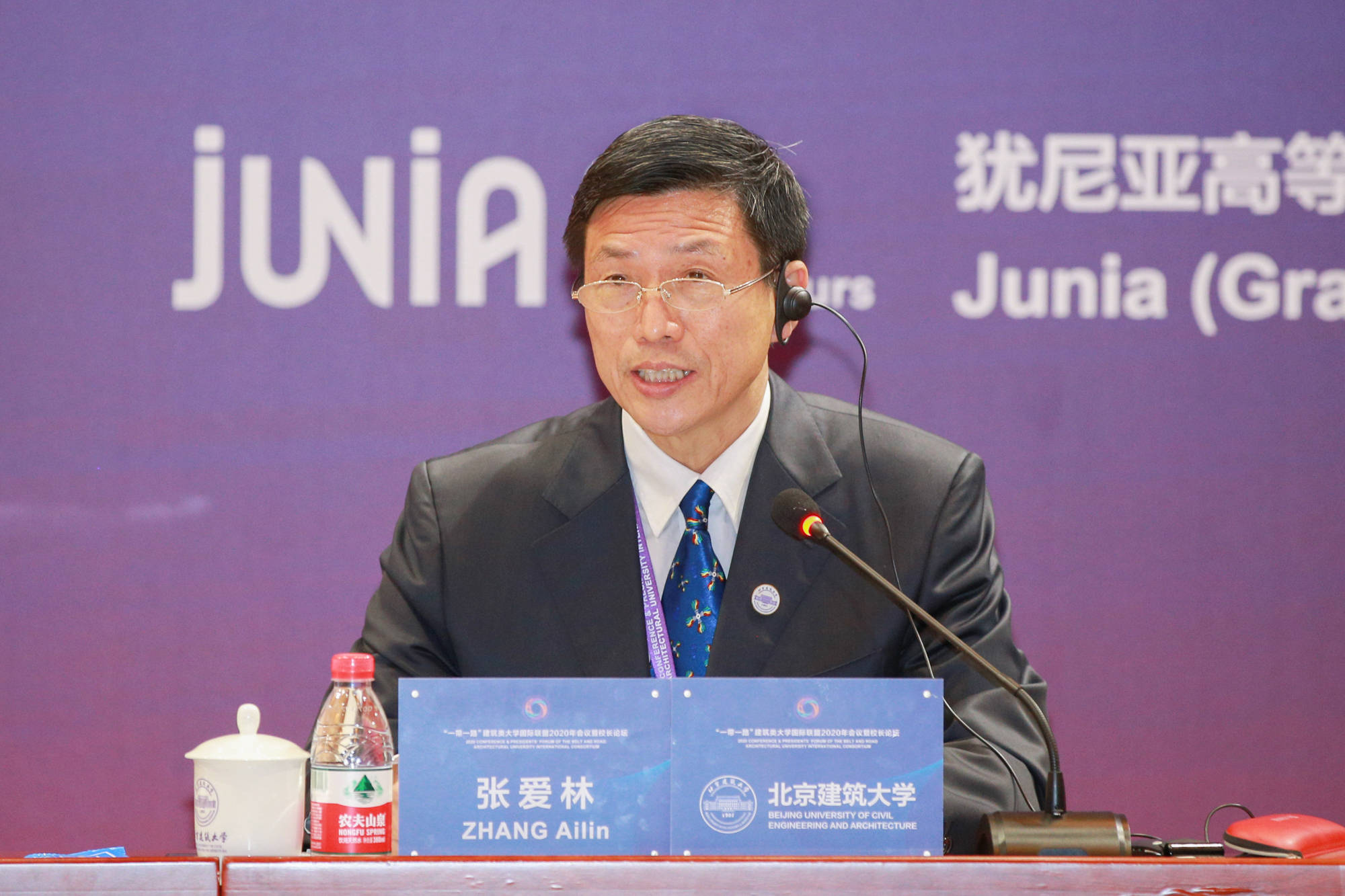“一帶一路”建筑類大學國際聯盟主席、北京建筑大學校長張愛林在會上發言。北京建筑大學提供