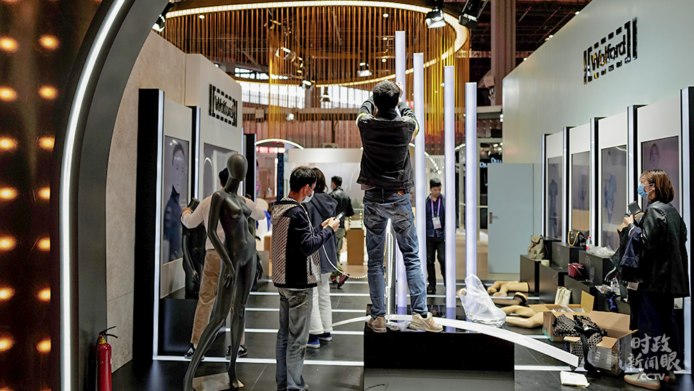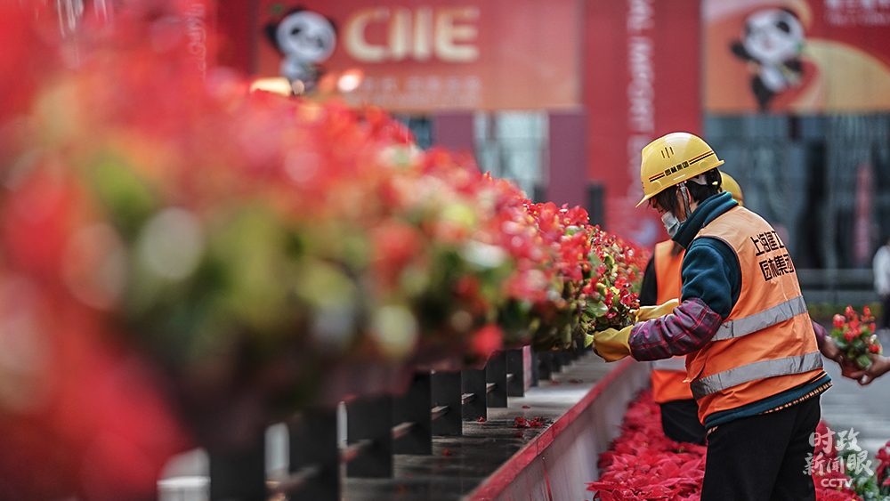 △進博會開幕前,工作人員做最后的整理、布展等工作。(總臺國廣記者李晉拍攝)