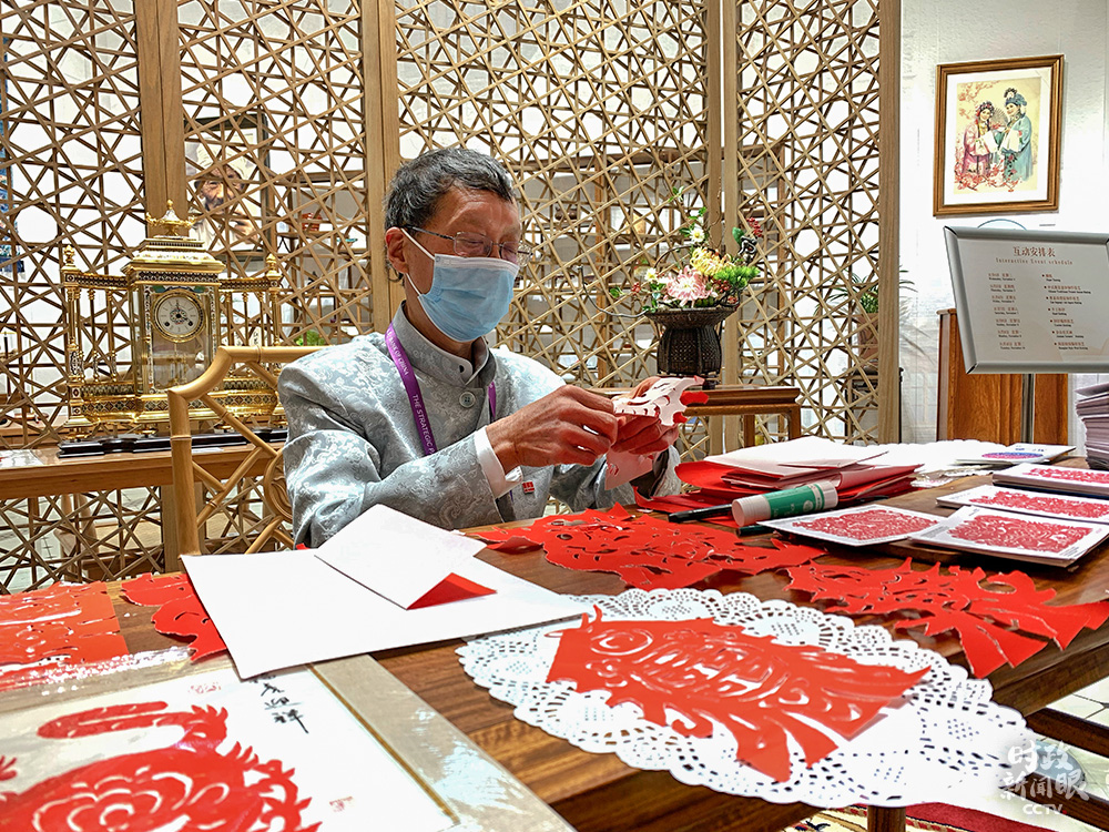 △這是上海市非遺海派撕紙項目代表性傳承人華興富,他可以徒手運用撕、挖、摳、鏤等手法技巧,制作出栩栩如生的人像、生肖、窗花等撕紙作品。(總臺央視記者程鋮拍攝)