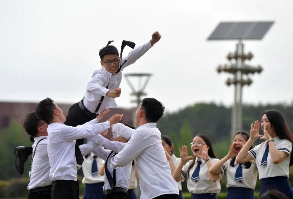 2020年6月10日,在南昌大學校園內,學子們一起歡呼,拍畢業照留念。新華社記者 彭昭之 攝