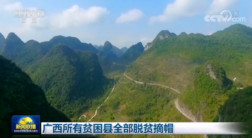 央視網消息(新聞聯播):今天(11月20日),廣西壯族自治區宣布最后8個貧困縣摘帽,區內所有貧困縣全部脫貧摘帽。
