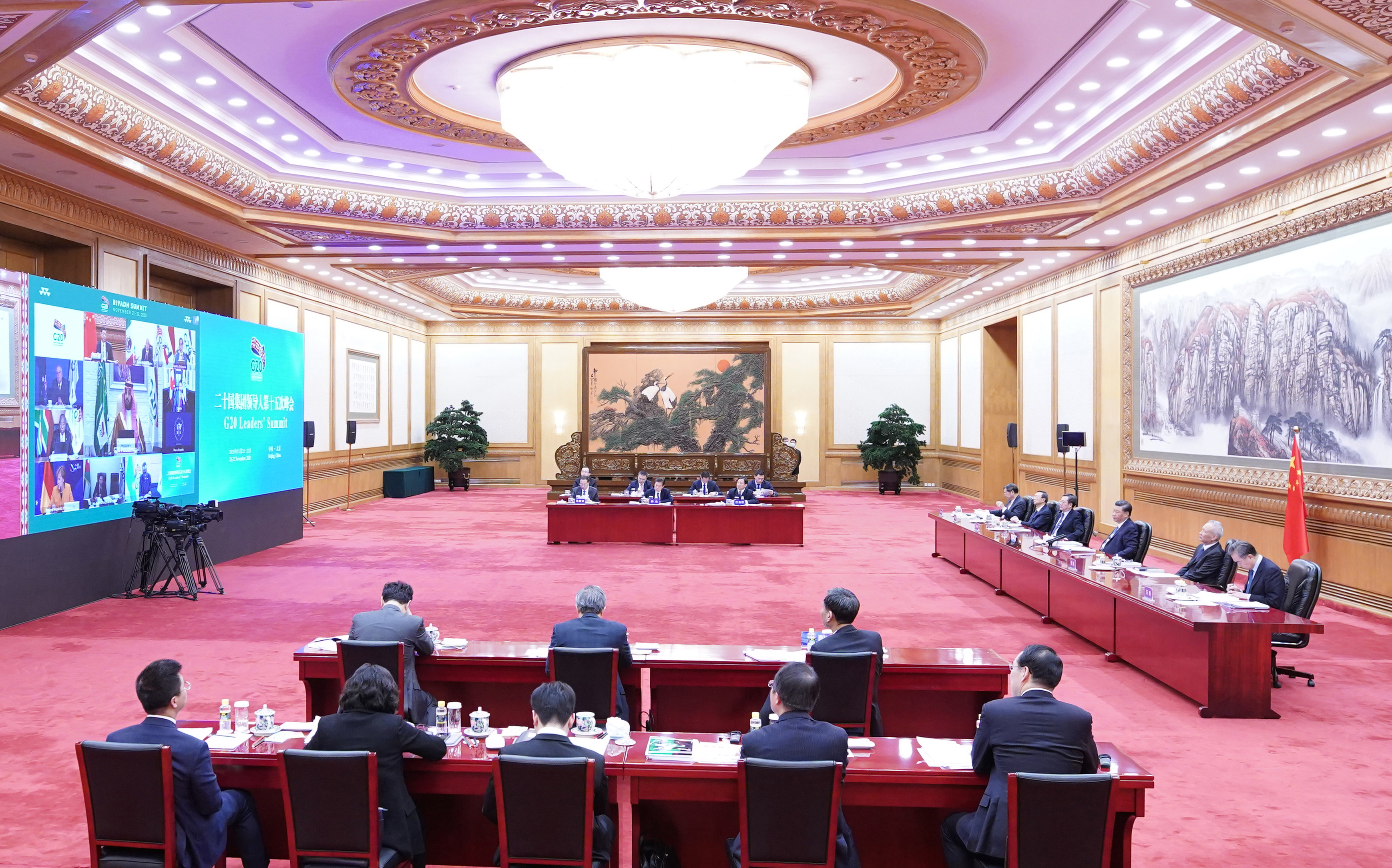 國家主席習近平21日晚在北京以視頻方式出席二十國集團領導人第十五次峰會第一階段會議并發表題為《勠力戰疫 共創未來》的重要講話,強調二十國集團應該遵循共商共建共享原則,堅持多邊主義、開放包容、互利合作、與時俱進,在后疫情時代國際秩序和全球治理方面發揮更大引領作用。中國愿同各國相互尊重、平等互利、和平共處、共同發展,共同推動構建人類命運共同體。