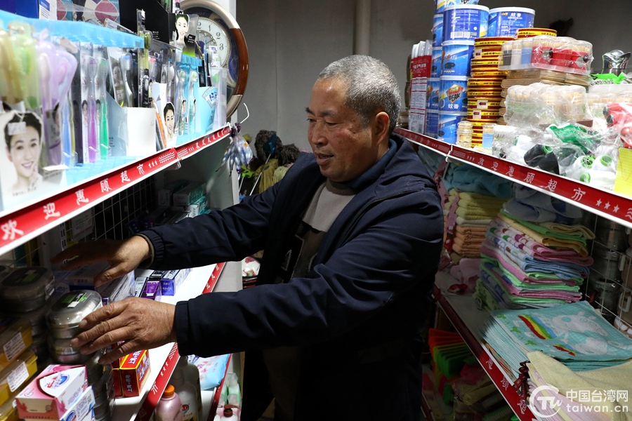 村民安景緒在店內(nèi)整理貨物。(中國(guó)臺(tái)灣網(wǎng) 尹賽楠 攝)