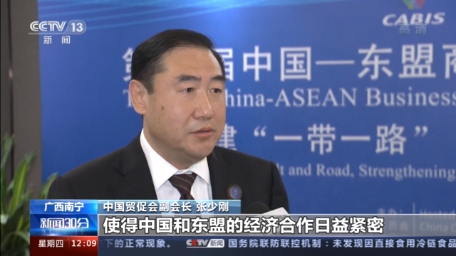中國(guó)貿(mào)促會(huì)副會(huì)長(zhǎng) 張少剛:中國(guó)不斷擴(kuò)大的市場(chǎng)規(guī)模,不斷改善的營(yíng)商環(huán)境,不斷便利的通關(guān)安排,使得中國(guó)和東盟的經(jīng)濟(jì)合作日益緊密。