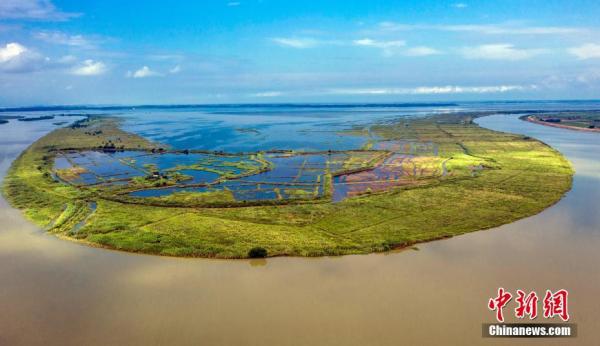 吳城鎮地處永修縣東北部,鄱陽湖西汊,是以平原為主的濱湖丘陵地區,地形地貌特征為“三山六水一分地”,是江西歷史上的四大名鎮之一,南納五河之水、北通長江之道,10 平方公里的水中沙山連綿不絕,60余萬畝的濕地草原是世界六大重要濕地之一。圖為永修縣吳城鎮大湖池濕地風光。 江西九江永修縣委宣傳部供圖