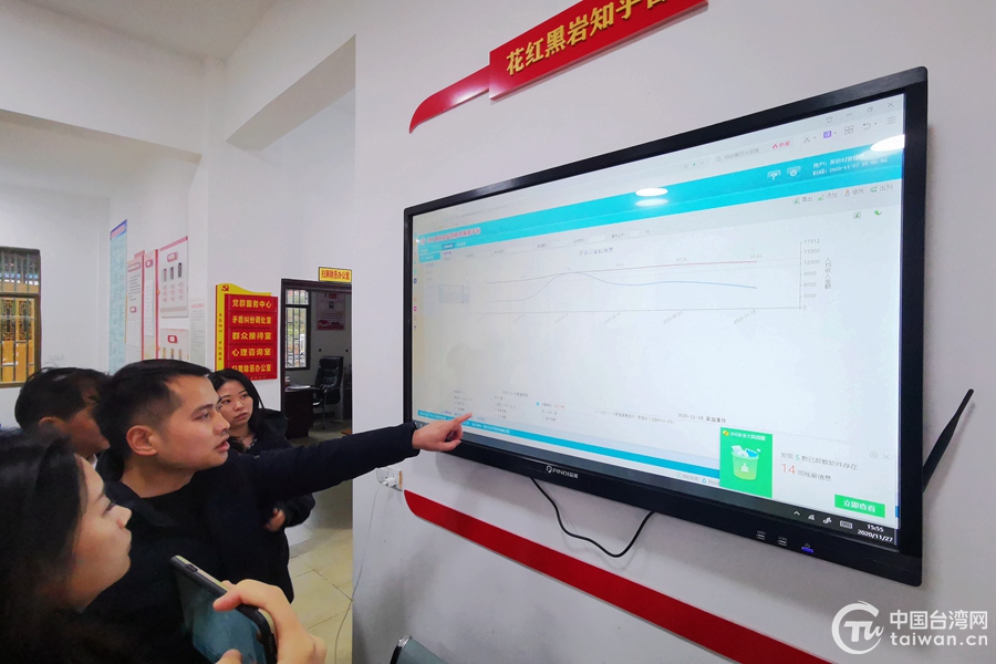 黑巖村工作人員向采訪團展示防貧監測預警系統。(中國臺灣網 尹賽楠 攝)