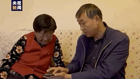 △對于不會使用智能手機(jī)的王三女(左一)來說,陳福慶就像“郵遞員”,通過他,自己就可以遠(yuǎn)程看到孫子孫女。