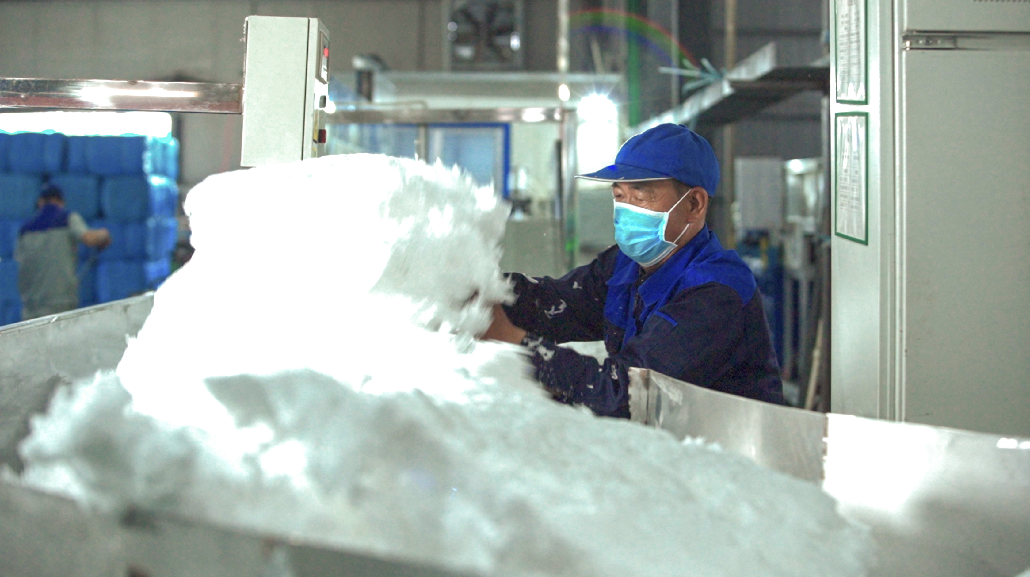 △曹六仁在玻棉廠生產(chǎn)線上忙碌著。