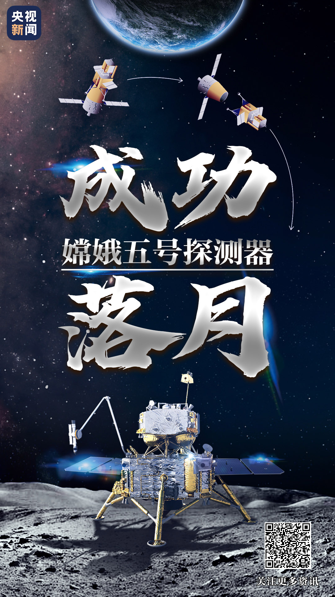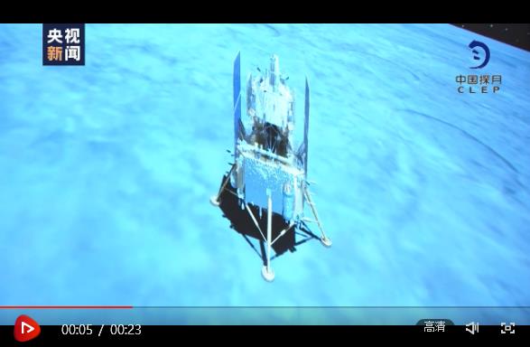 獨家視頻丨嫦娥五號探測器成功在月球正面預選著陸區著陸