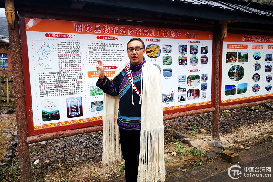 駐村第一書記余國華介紹谷莫村概況。(中國臺(tái)灣網(wǎng) 尹賽楠 攝)