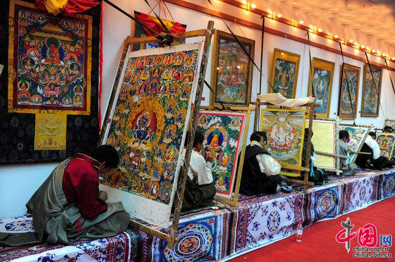 青海同仁熱貢畫院免費(fèi)培訓(xùn)貧困牧民唐卡繪畫技藝