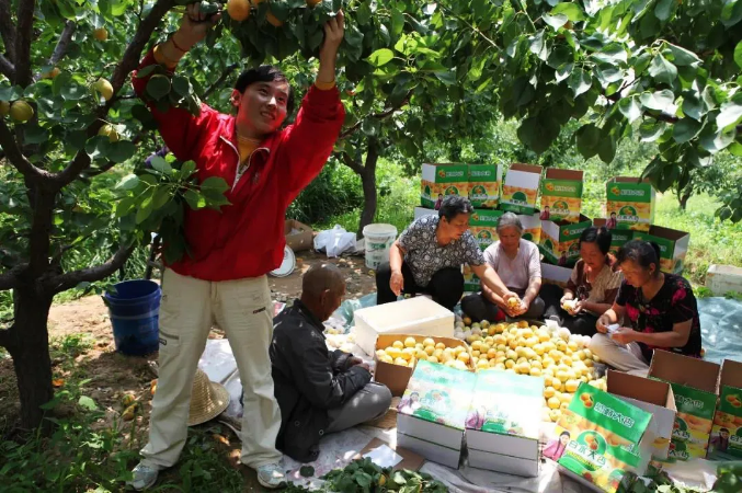 白水大杏成為繁峙縣脫貧致富的好產業(yè)。圖為果農正在采摘包裝大杏。喬偉攝