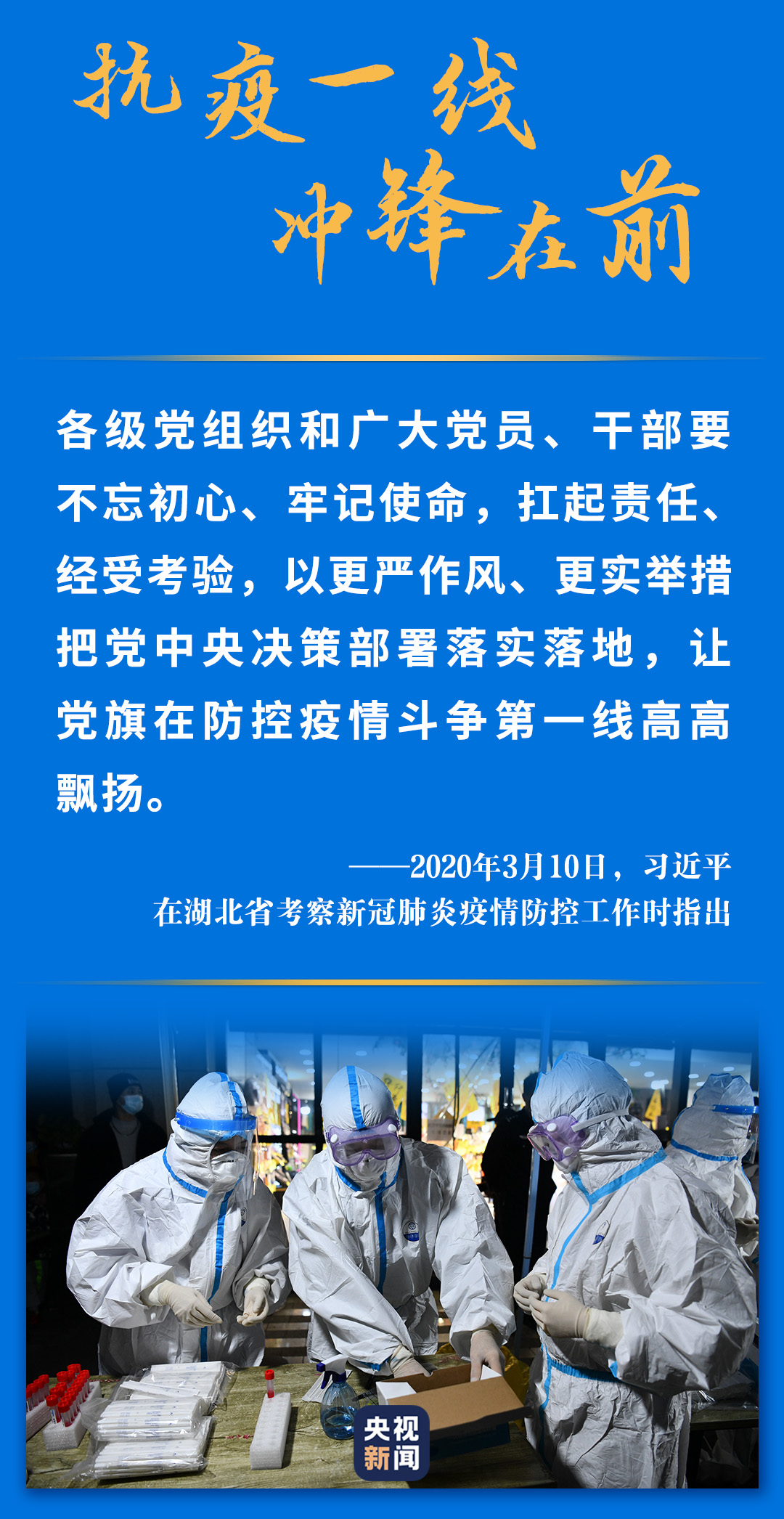 “這次抗疫斗爭伊始,黨中央就號召全黨,讓黨旗在防控疫情斗爭第一線高高飄揚,充分體現了中國共產黨人的擔當和風骨!” 2020年9月8日,在全國抗擊新冠肺炎疫情表彰大會上,習近平總書記深情點贊廣大共產黨員不忘初心、牢記使命,充分發揮了先鋒模范作用。