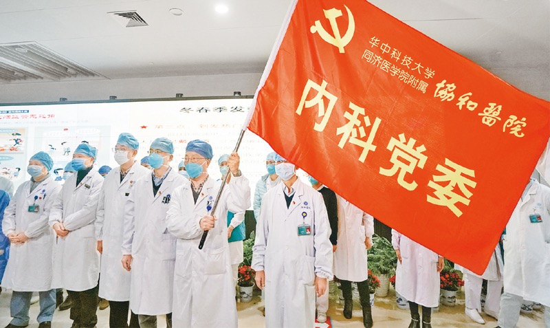 △2020年1月22日,在華中科技大學同濟醫學院附屬協和醫院,醫護人員加入抗擊新冠肺炎疫情突擊隊。突擊隊由該院黨委組建,以黨員為主體。