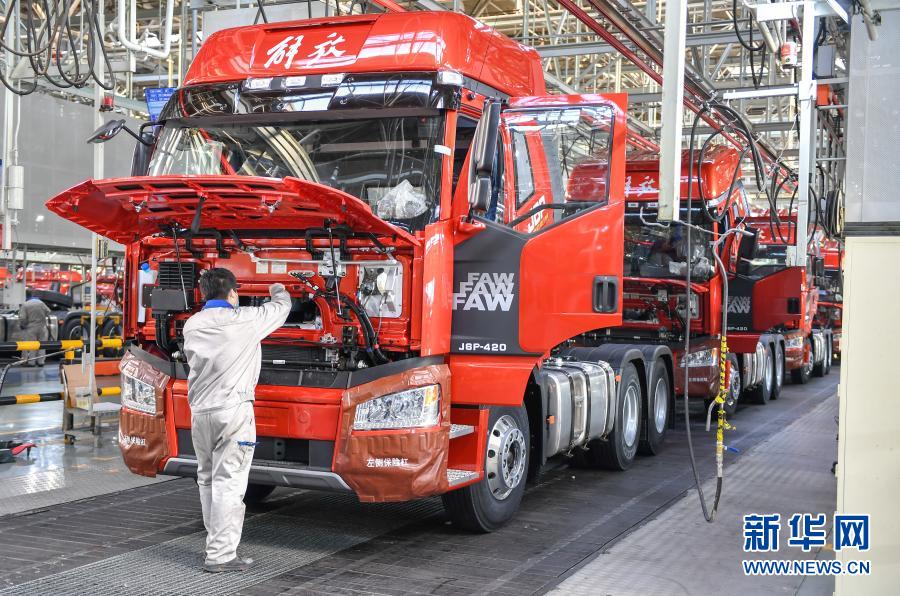 工人在位于長春的一汽解放總裝車間裝配車輛(2021年1月5日攝)。1月18日,國家統(tǒng)計(jì)局發(fā)布數(shù)據(jù),2020年,我國國內(nèi)生產(chǎn)總值(GDP)首次突破100萬億元大關(guān)。新華社記者 張楠 攝