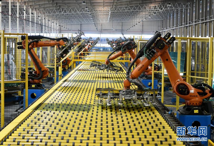 在福建省福清市的福耀玻璃集團(tuán)汽車玻璃生產(chǎn)車間,機(jī)械手在生產(chǎn)線上作業(yè)(2021年1月12日攝)。新華社記者 姜克紅 攝