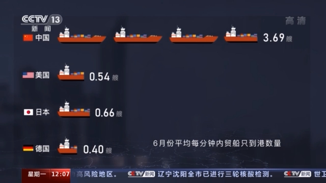 2020年,從二季度開始,大多數(shù)港口的船次明顯增多,跟一季度比,內(nèi)貿(mào)航次總量上漲了12%。再換個角度看,2020年6月份,在中國,平均每分鐘有3.69艘內(nèi)貿(mào)船只到達港口,超過了大部分經(jīng)濟體。