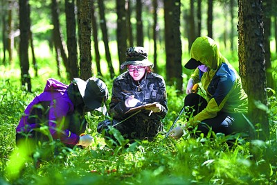工作人員在河北塞罕壩機(jī)械林場(chǎng)采集數(shù)據(jù)。新華社發(fā)
