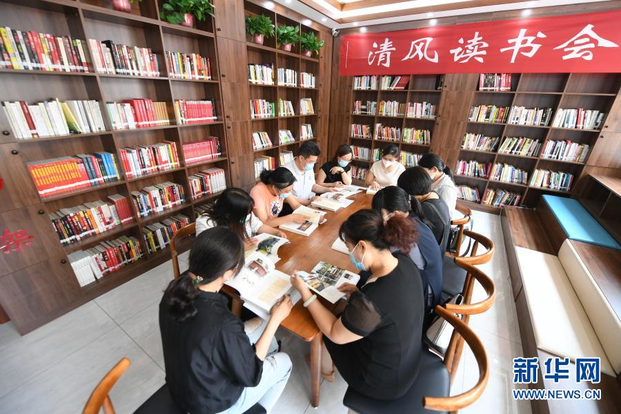 2020年6月23日,河北省棗強縣紀委監委組織部分單位黨員干部,在縣文化廣電和旅游局舉行“清風讀書會”。新華社記者 李曉果 攝