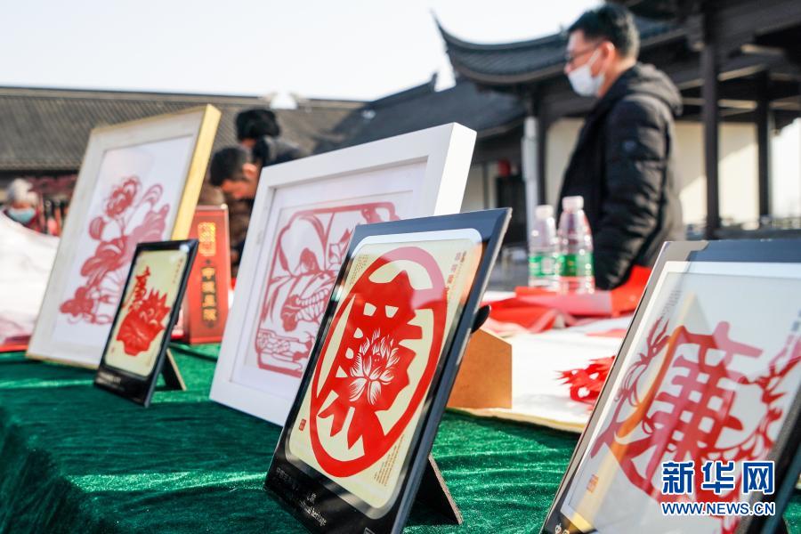 1月14日,江蘇省連云港市灌云縣紀委監委在當地同興鎮梅園文化廣場舉行廉政文化進鄉村活動。這是在活動現場拍攝的廉政主題剪紙。 新華社記者 李博 攝