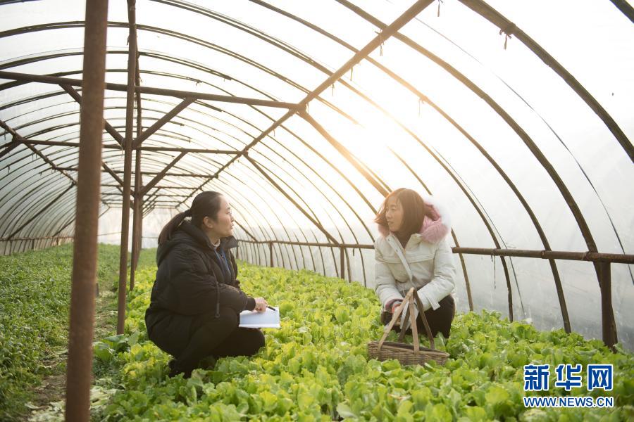 2020年12月10日,河北省巨鹿縣紀委監委工作人員(左一和左二)在巨鹿縣一個農業園區的大棚向種植戶了解扶貧資金落實情況。 新華社記者 牟宇 攝
