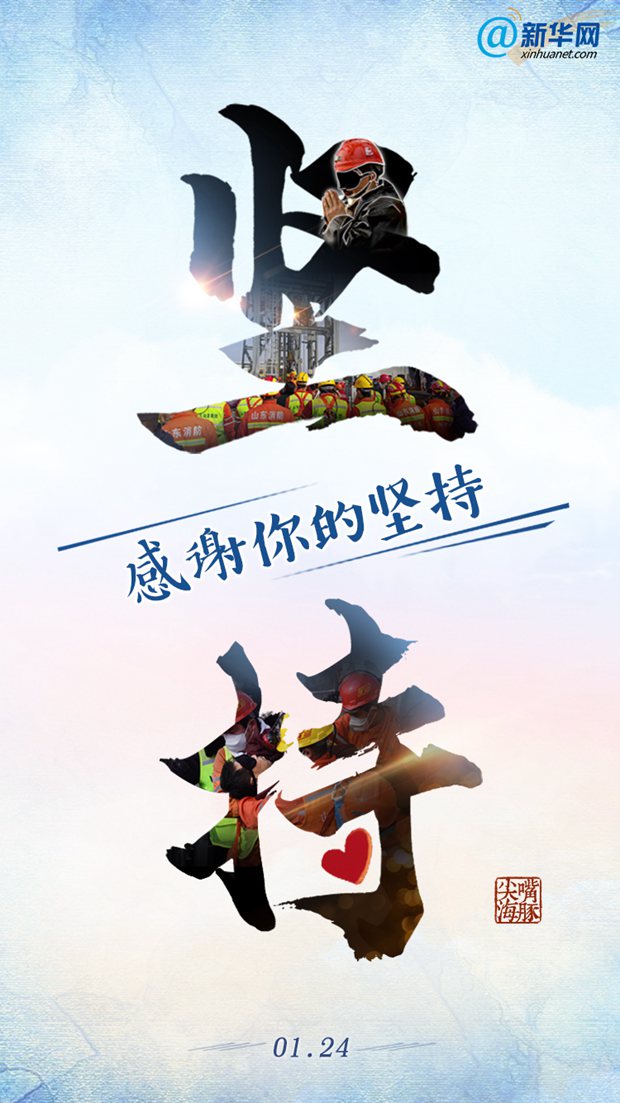 感謝你的堅持,感謝堅持帶來的感動。眼下,還有工人被困井下,救援仍在緊張有序地進行。希望救援再接再厲,希望更多被困者平安歸來,愿你們全力以赴、堅持到底!(文字:馬若虎 海報:王晨曦)
