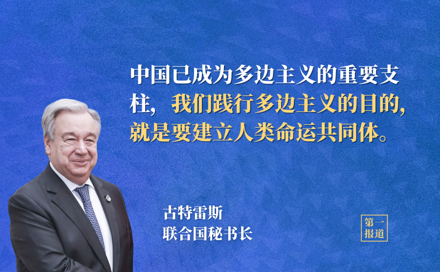“讓我們攜起手來,讓多邊主義火炬照亮人類前行之路,向著構建人類命運共同體不斷邁進!”
