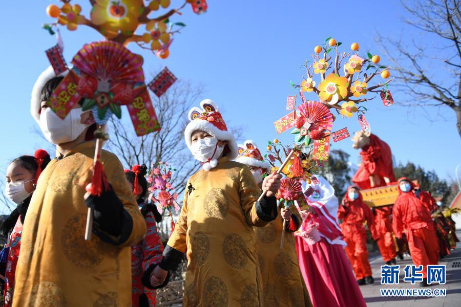 立春將至,北京東城區建國門街道在古觀象臺舉辦“風車迎春,鞭打春!泵袼谆顒樱哟禾斓牡絹。